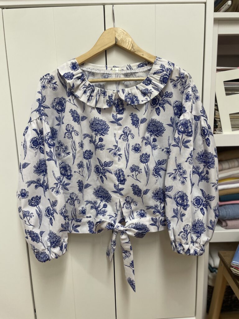 Dámská halenka s květovaným motivem modrobílé kombinaci je kouskem, který v sobě spojuje ženkost, pohodlí a nadčasový styl. Jemný kulatý límeček dodává halence měkký romantický nádech a nabírané rukávy