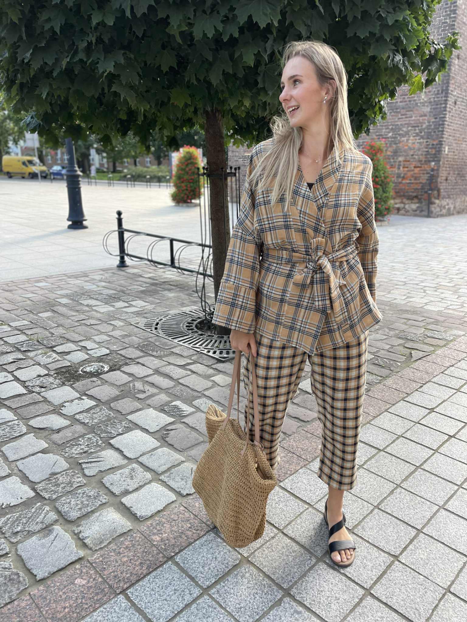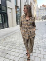 Skvěle ladí k topům, na holé tělo i přes rolák v chladnějších dnech. Volný střih se zavazováním v pase, kapsy v bocích.