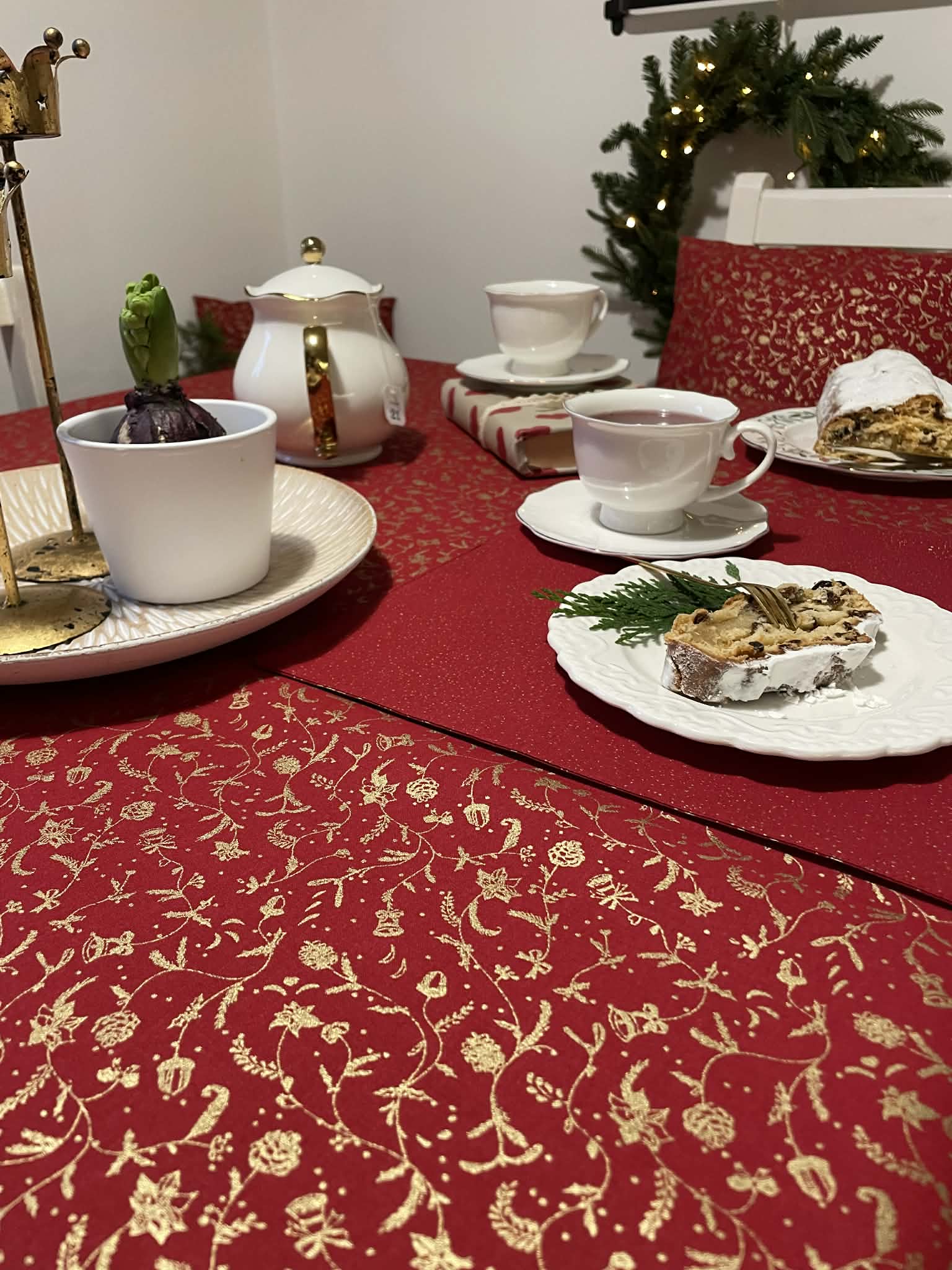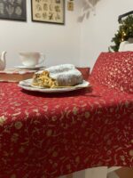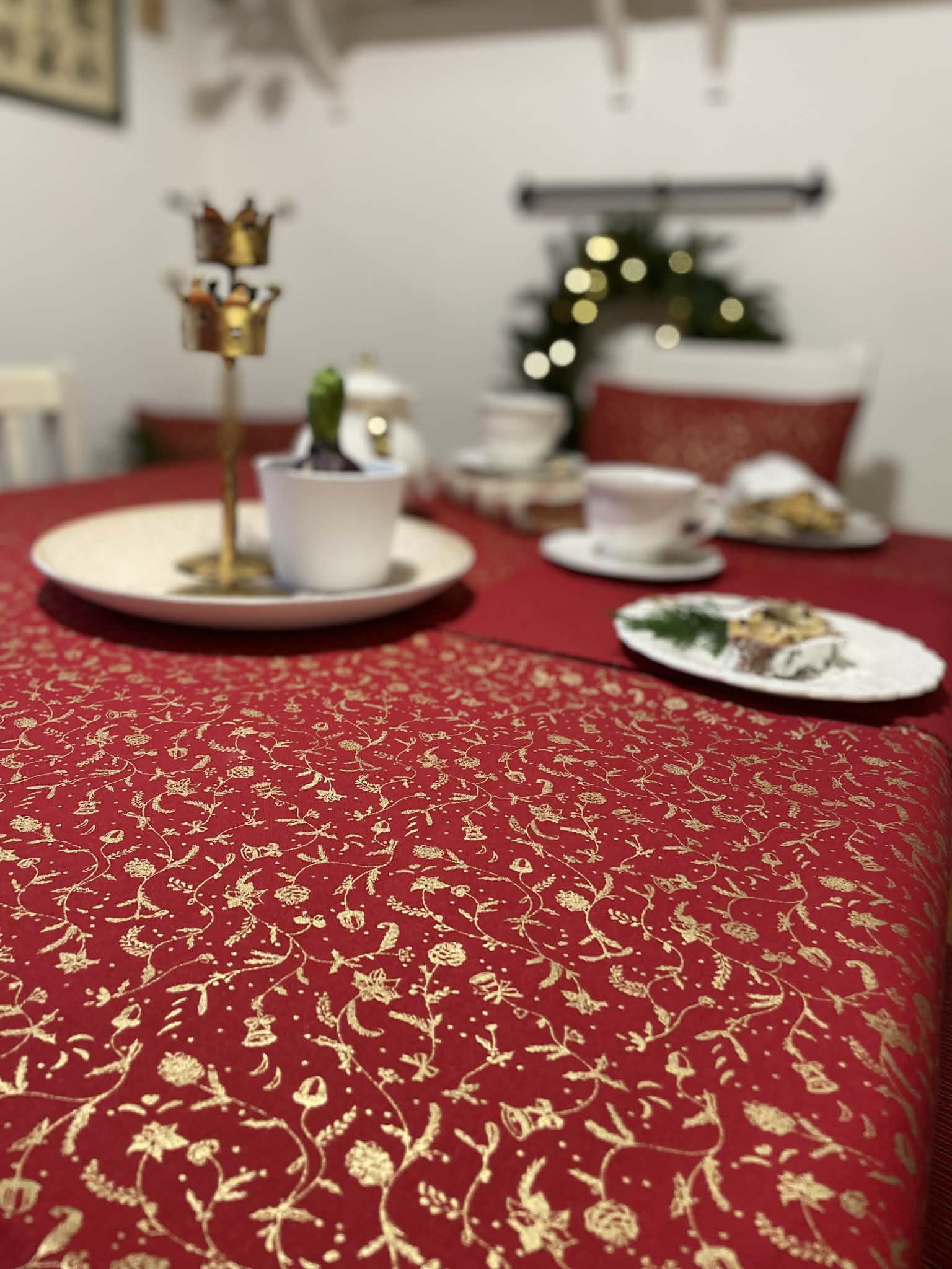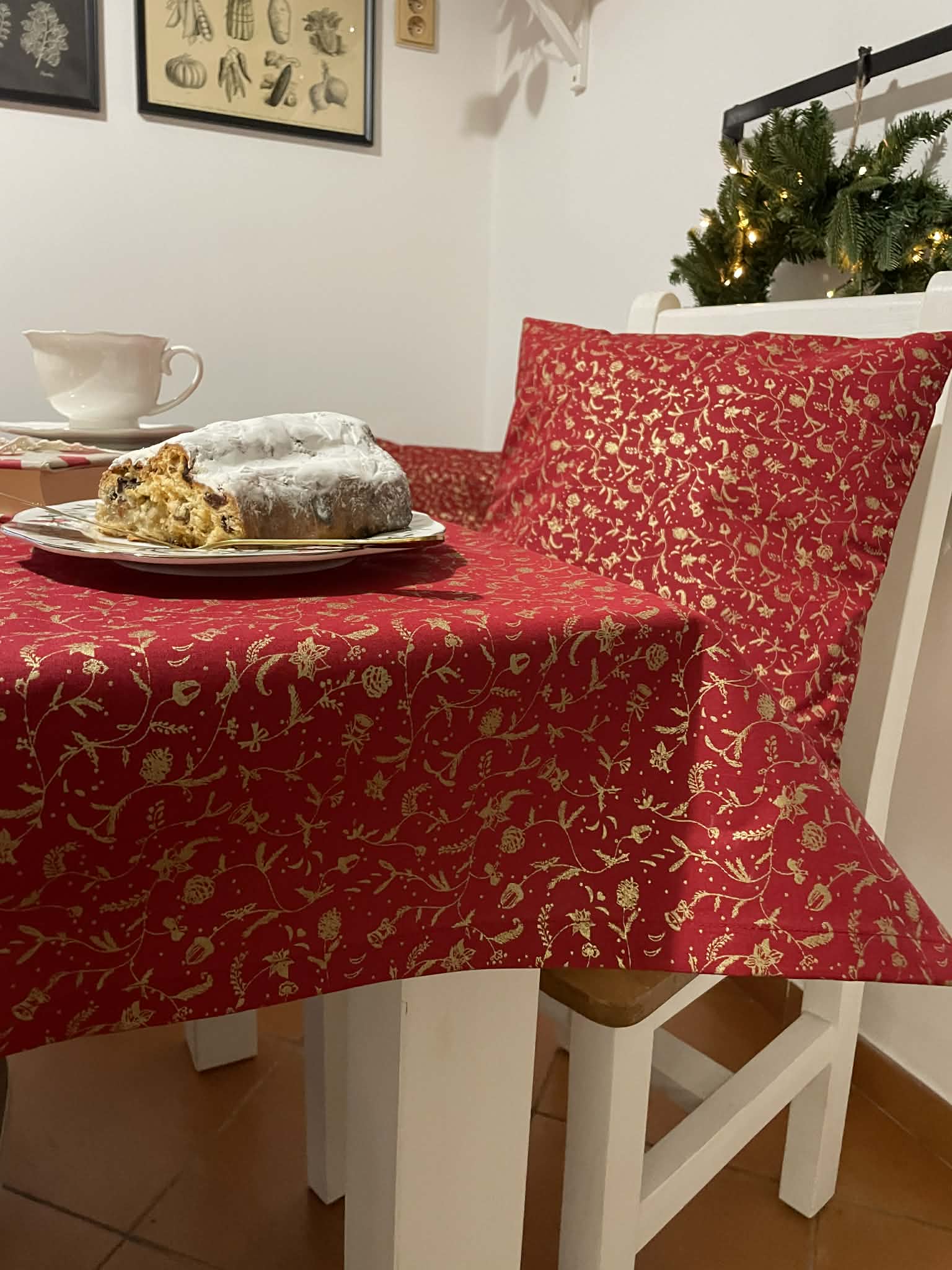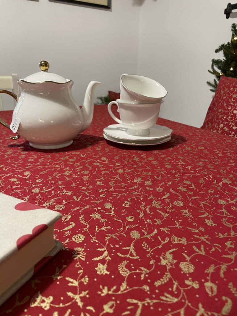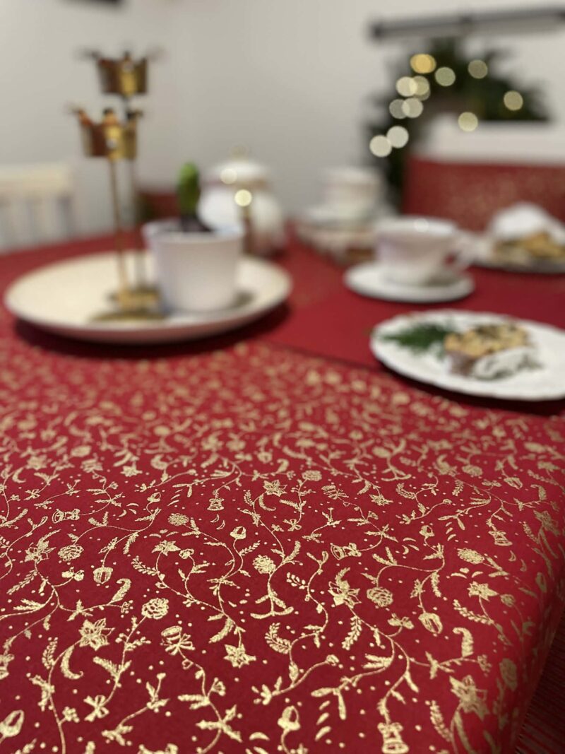 Tento vánoční ubrus v syté červené barvě se zlatým vzorem vnese do vašeho domova sváteční atmosféru během chvilky. Je ušitý z kvalitní bavlněné látky, která krásně drží tvar, příjemně se pokládá a snadno udržuje. Díky elegantnímu zlatému potisku působí slavnostně, ale zároveň jemně – perfektní volba pro vánoční večeře, posezení u kávy i adventní dekorování stolu. Každý kus je pečlivě ručně šitý, aby vydržel mnoho dalších Vánoc.