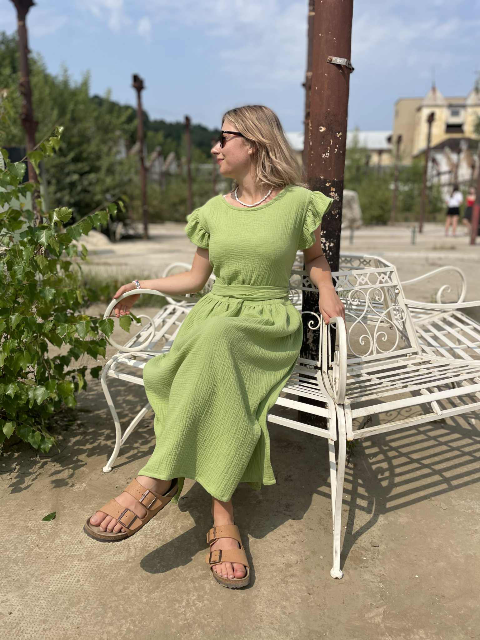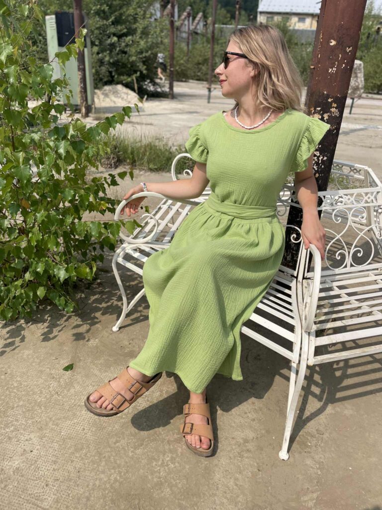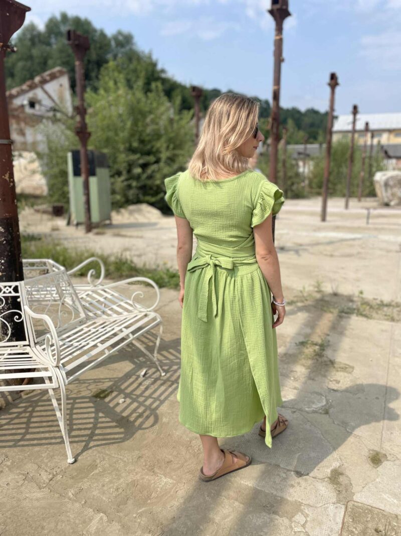 Tyto vázací (zavinovací) šaty z mušelínu jsou v bocích nesešité.