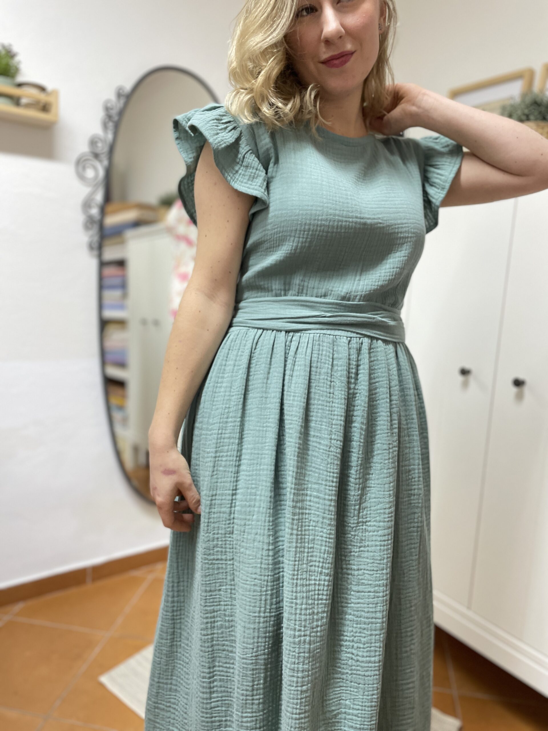 Uvázáním zadního dílu do pasu a naopak předního do zad vznikne zajímavý model ve kterém budete vypadat elegantně a okouzlíte 🙂
